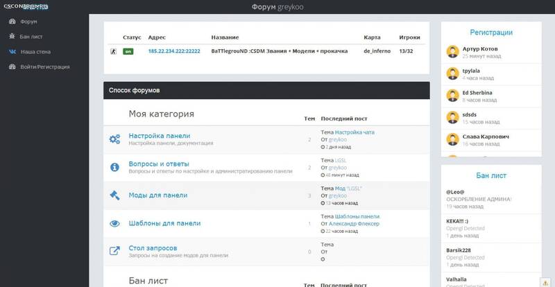 greypanel - скрипт панели управления для серверов Counter-Strike 1.6 , в неё входят такие модули как : покупка привилегий (mysql или по users.ini) , гибкая настройка прав , установка стоимости и флагов для каждого из серверов , автоматическое снятие прав по крону , форум , бан лист с созданием заявки на разбан , профиль юзера , авторизация через ВК и многое другое.